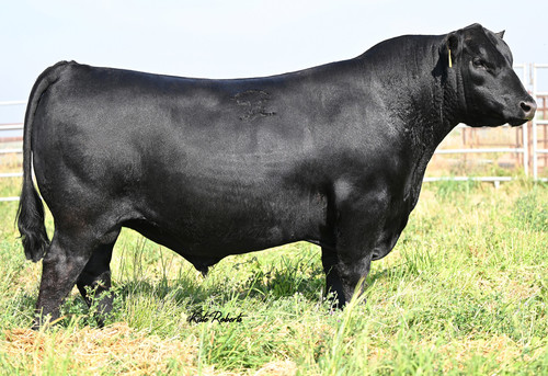A stout, moderate, thick set bull out of a first calf Rainmaker daughter.